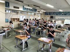 1学期は今日が最終日でした。2学期の活動に向けて,運動部は,夏休みの最後に体慣らしの部活動があります。音楽部は,タブレットで動画を見ながら夏休み中に練習ができるように,練習方法を工夫していきます。