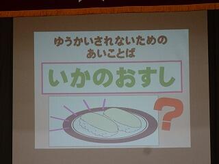 『いかのおすし』について、教えてもらいましたので、どんな内容であったか、ご家庭で聞いてあげてください。