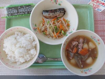 6月15日 牛乳 ご飯 味付けのり 鰯の梅煮 枝豆と野菜の和え物 芋団子汁