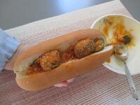 ラタトゥイユは,玉ねぎやなすなどの野菜をニンニクとオリーブオイルで炒めて煮た南フランスの郷土料理です。今日は,柏でとれたなすを使っています。なすやズッキーニ・トマトなどの夏野菜は体を冷やしてくれる働きがあります。コロコロサーモンフライのソースにもなるので,お好みでパンにはさんで食べてください。