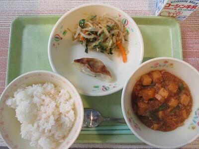 6月28日 牛乳 ご飯 焼き餃子 中華サラダ 夏野菜の麻婆豆腐
