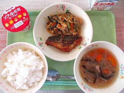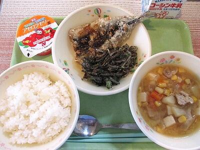 10月17日 牛乳 ご飯 鰯の蒲焼き ごまあえ どさんこ汁 アセロラゼリー