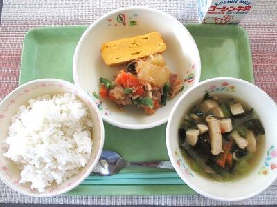 12月11日 牛乳 ご飯 厚焼き卵 肉じゃが 柏大根の味噌汁