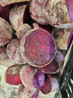 ↑写真は柏でとれたビーツです。皮をむいて薄く切っています。大根よりほくほくしています。