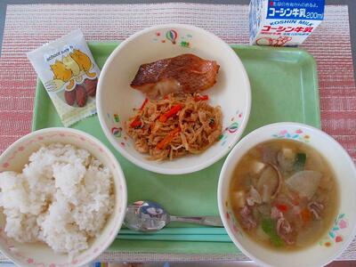 3月10日 牛乳 ご飯 めばるの照り焼き 切干大根の煮物 豚汁 スナックアーモンド