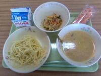 たんたんふうつけめん(ちゃんぽんめん)・にらともやしのちゅうかあえ・チーズドックでした。
