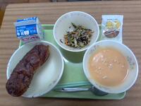 6月27日の給食はココアあげパン・ひじきとあおだいずのサラダ・キャロットポタージュ・スナックアーモンドでした。
