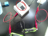 今日の理科の授業では、MESHというプログラミングのGPIOブロックというものを使って発光ダイオードを光らせました。GPIOブロックは右の写真の赤い丸の物です。
