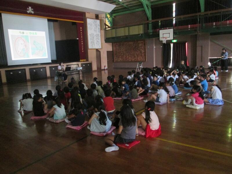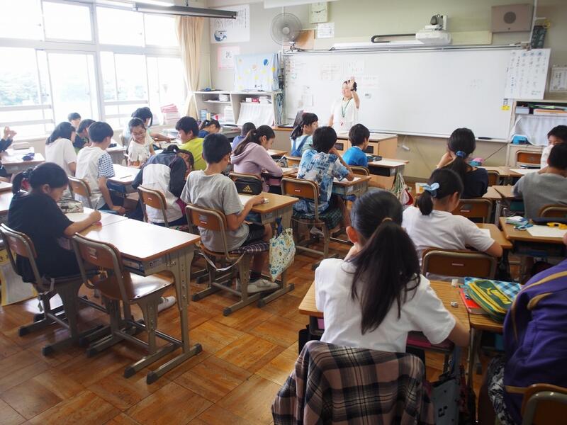 子どもたちは話を聞いて,メモをしたり質問をしたりして学びました。