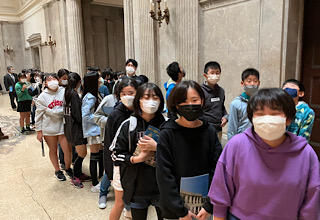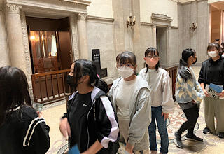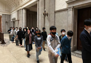 次は国会見学です。ちょうど予算委員会が始まろうとしている衆議院を参観します。厳かな雰囲気に身が引き締まります。