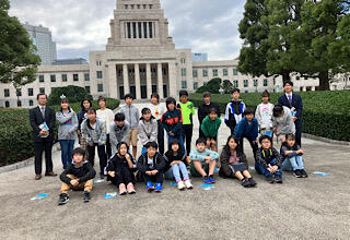 国会をバックに記念撮影です。