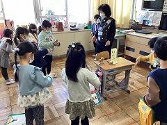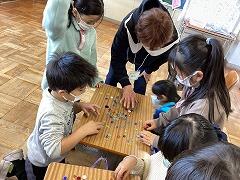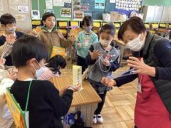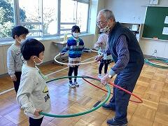 1年生は生活科で、昔あそびの学習をしています。こままわし、おはじき、お手玉、まりつき、けんだま、あやとり、フラフープなど、昔の子どもには馴染みのあった遊びに挑戦しています。今日は、地域の「遊の会」の方々が、先生となって教えてくださいました。地域の方との交流は、3年ぶりです。さすがの”わざ”を見て、子どもたちは、うれしくて、はしゃぎながら、真剣な表情でチャレンジしていました。まだうまくできないですが、これをきっかけに上達してほしいです。