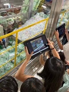 一度学校に戻って給食を食べてから、リサイクルプラザに来ました。