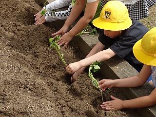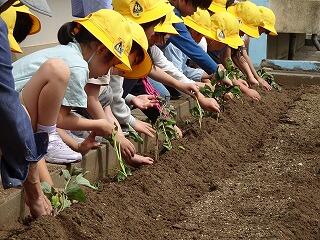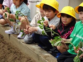 さつまいもがたくさん収穫できるように、お世話をお願いします。(校長 佐和)