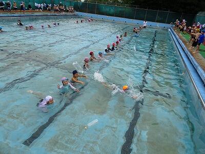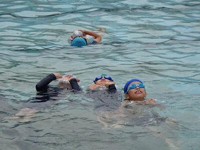 先日の高学年に続き、1年生から4年生も体育の時間にプールで、着衣泳を行いました。