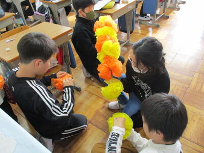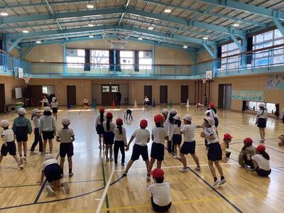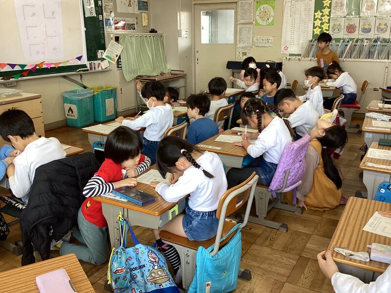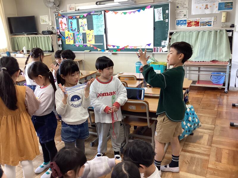 今日は,風早幼稚園との交流会を行いました。幼稚園・保育園との最後の交流会となり,昔の遊びも学校案内もルールをしっかり守りながら笑顔で交流する姿が見られました。幼稚園生との関わり方にも慣れ,2年生としての姿が垣間見えたように感じます。会の終わりには,お別れを惜しむ姿に心が温かくなりました。