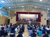 今日朝学習の時間に音楽部が全校にむけて発表をしてくれました。