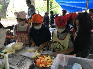少しずつ手際が良くなってきました。美味しいカレーを目指して頑張っています。はじめての割には火の番もお米研ぎも野菜の切り方も上手にできました。