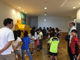 ゴミピットという所にゴミが集められ、それを24時間かくはんしながら、小さく燃えやすくしています。大きなUFOキャッチャーのような道具を見学しています。