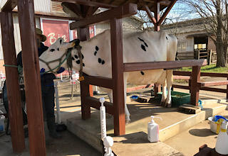 乳牛は7歳でも立派なお母さんで、もう何頭も仔牛を産んでいるそうです。