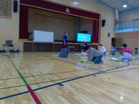 ジュニア救命のキットがあり胸骨圧迫の練習をしました。