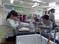 5年1組は3・4時間目に家庭科で味噌汁を作る調理実習をしました。