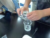 今日は水の量を増やして見たら溶ける量はどうなるのかという実験をしました。