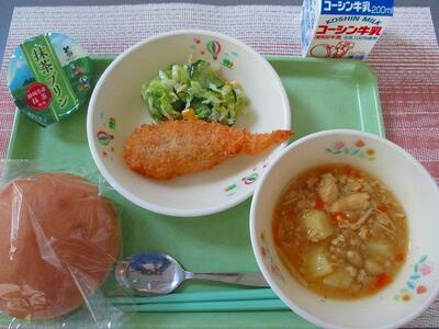 めひかりは,目が大きくて青く光ることから「めひかり」と呼ばれていますが,正式な名前は「アオメエソ」と言います。見た目は少し怖い顔をしていますが,食べるととても身が柔らかく,皮や骨まで丸ごと食べられる魚です。今日は唐揚げにしてあります。しっかりよくかんで骨も残さず食べてくれるとうれしいです。