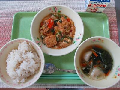 3月4日 牛乳 麦ご飯 中華丼の具 春雨スープ ベビーチーズ