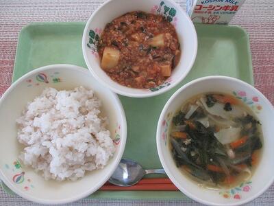 12月18日 牛乳 麦ご飯 かぶ入り麻婆豆腐 ワンタンスープ