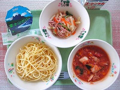 11月の給食にも登場した,6年生がPR動画を作ったニューオークボの生スパゲティです。今日は秋谷さんのかぶと豆乳が入ったトマトクリームソースにしました。もちもちのスパゲティの食感を楽しんでください。デザートには2月23日の「富士山の日」にちなんでゼリーを出しました。縁起のいいゼリ‐を食べて毎日元気に過ごせますように。