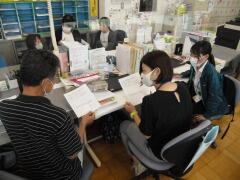 来年度に向けて,重点目標の指標を見直すためにみんなで話し合いました。感染対策として学団ごとに集まり,オンラインでつないで行いました。