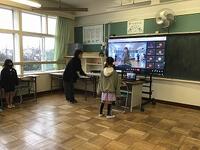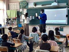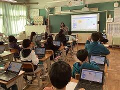 1年生がALTのエマさんと外国語指導員の佐藤先生と一緒にアルファベットの学習をしていました。「C」の文字を見て,すぐに「しー」と反応するニコちゃんがたくさんいました。さらに,エマさんの発音を聞いた後には,「スィー」という感じでエマさんの音に合わせようとする姿が,とても素敵でした。