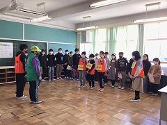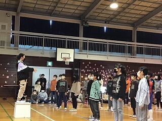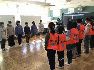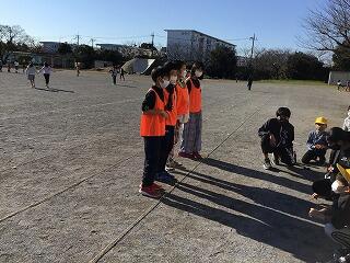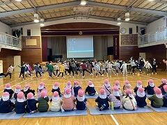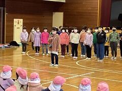 6年生にとっては,下の学年の友達に見てもらうことで本番に近い緊張感をもつこと,5年生にとっては,1年後の姿をイメージすることが目的です。5年生は,次の学校全体のリーダーとしての自覚を持つこともねらいとしています。