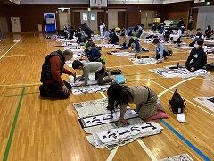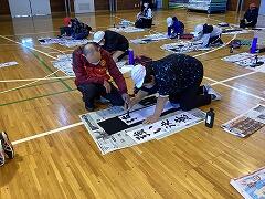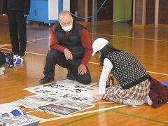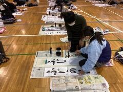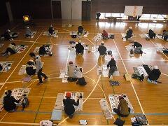 今年も染谷夫妻を講師にお迎えして,書初め練習会を体育館で行いました。