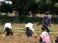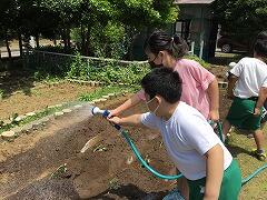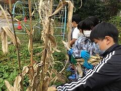 春にみんなでとうもろこしの種をまき,毎日,水やりを交代で行いました。すくすくと育つ様子が楽しみでした。