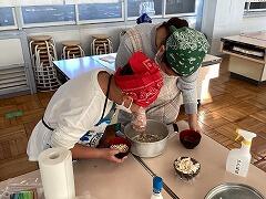 6年生が,調理実習で野菜炒めを作っていました。食べた感想を聞いたら,「超!おいしかった!!」「給食よりおいしかったかも!!」と満面の笑顔で言っていました。本当に,いい匂いが立ち込めていました。