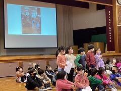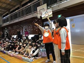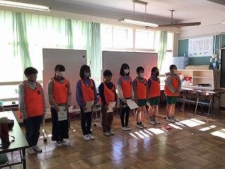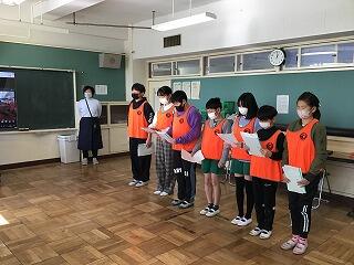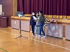 みんなで校歌を歌ったあと,児童会本部が児童代表で1年間のふりかえりを発表しました。