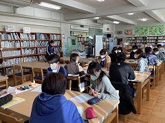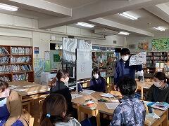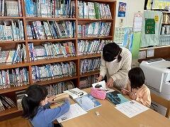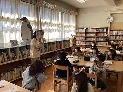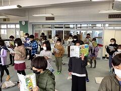 事務の高橋さんもボランティアに参加してくれています。今日は,大津二小での初読み聞かせでした