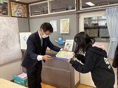 その後,1年間子ども司書の仕事をやり遂げた5年生の児童が校長先生から賞状を受け取りました!