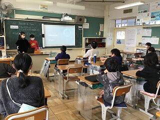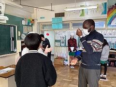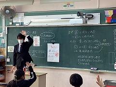 久保田先生と3年生の児童で,冬休みの生活についての話がありました。
