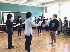 最初に家庭科作品展と健歯コンクールの表彰がありました。