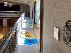 手すりやスイッチ,ドアノブなど,みんなが使う場所の日々の消毒は交代で続けています。