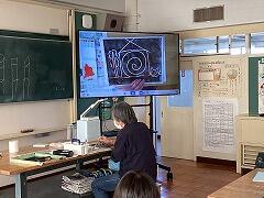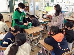 1年生が,ICT支援員の中村さんに教わりながら,プログラミング学習に楽しそうに取り組みました。『GLICODE(グリコード)®』は,おかしをルールに従って並べるだけで遊びながらプログラミングの基礎的な考え方を学習できるアプリです。
