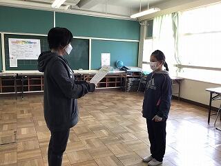 続いて,5年生の児童二人が代表で修了証書を受け取りました!