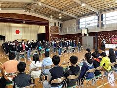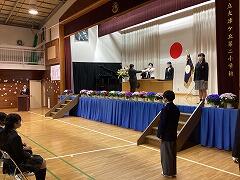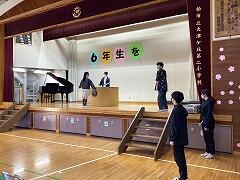 式がすべて終わってから,5年生から6年生へ今日の素敵な姿への感想と,これまでの感謝の言葉が伝えられました。学校のリーダーとして頑張ってほしいですね。期待しています。
