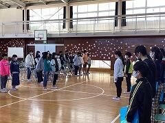 練習が終わると1年生が体育館に入ってきて,ペアのお兄さん・お姉さんへ感謝カードを渡しました。6年生からはこのカードを見て,明日の卒業式をがんばります!!と力強い御礼の言葉がありました。