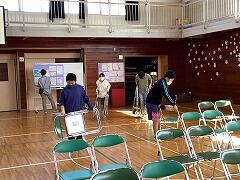 その説明の間に,会場づくりを急いで行うチームもいました!