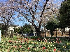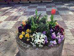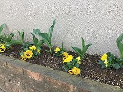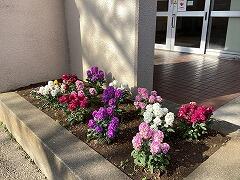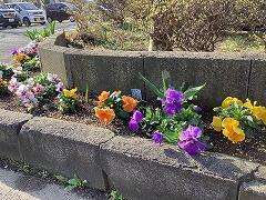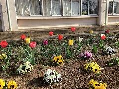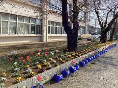 大津二小の学校のまわりは,春がいっぱいです。花壇は,用務員の竹内さんと宮澤さんがいつもきれいに整えてくれています。