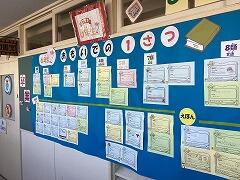 2階の図書室近くの廊下に1年から6年までの復習プリントが棚に置いてあります。減ってくると算数支援員の関先生がいつも補充してくれています。自学で使うなど使い方は人それぞれ